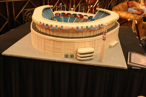 New York City, NY (July 12, 2008) - One of my great regrets in life is never having seen a baseball game at Yankee Stadium or even having seen Yankee Stadium. Bu the executive chef at the Intercontinental Barclay Hotel in New York City has cooked up the next best thing: a Marzipan cake replica of the stadium. Enjoy!